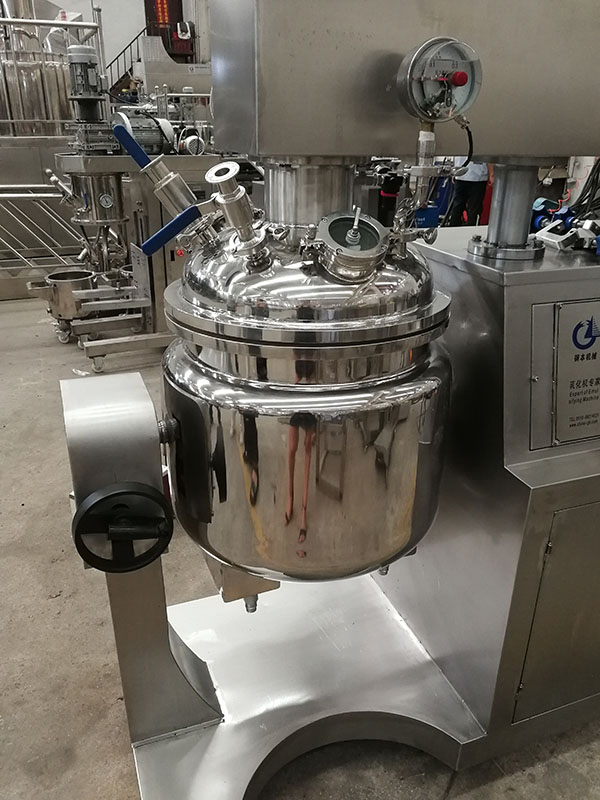 50L乳化机是专为小批量生产膏霜类、蜜类、乳液乳剂类等乳化产品而设计制造的,本机造型美观、体积小、重量轻、与物料接触部分全部采用优质不锈钢(注:医用采用316L);锅体内部各连接处均采用平滑园弧过度,锅底放料以及倾倒放料保证锅内无残料;高剪切均质头,定转子结构设计为爪式对偶咬合,物料从定转子的上部与下部同时吸入,剪切概率成倍提高,同时避免上部物料易产生死角的问题。适用于精细的乳化、高品质的分散及高效率的混合。全方位刮壁搅拌物料翻滚无死角,真正符合GMP标准。