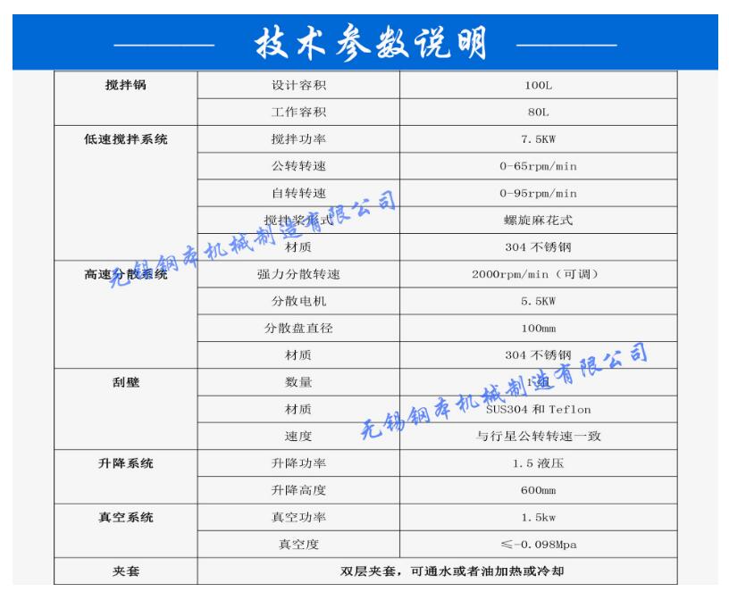 密闭式设计,可以配套真空系统,实现真空脱泡。搅拌桶可设计带夹套,可通热水(油)加热,温度可控。
