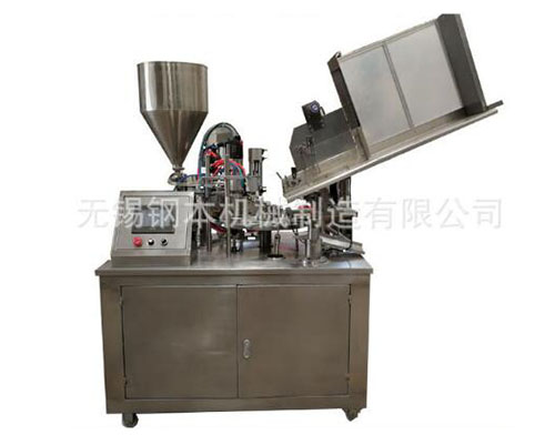 铝塑管灌装封尾机主要利用分度机构带动装有夹具的转盘作间歇运动,完成自动送管、灌装、加热封尾、压码、切边、成品退出等一系列功能。灌装计量准确,加热时间稳定、可调,封尾外观漂亮、整齐、牢固、卫生,切边平整。该机设有10个工位,自动完成,整机运行平稳可靠。接触物料部分及某些相关部位均采用优质不锈钢制作,需要清洗的部位均选用快换装置,拆洗方便。该机适用于铝塑管和复合管作为包装材料的物料,是化妆品、制药、胶粘剂、鞋油等行业的必备产品。