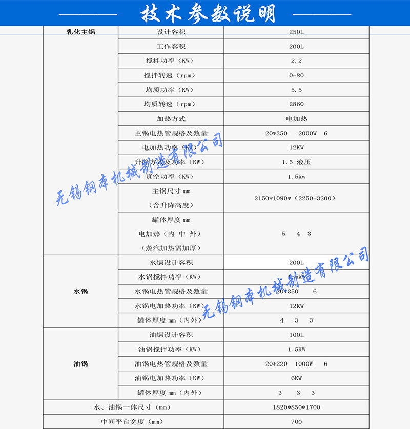 ◆ 搅拌形式——主锅为框式搅拌加均质头,油水锅有锚式搅拌、分散盘以及浆叶式搅拌等。