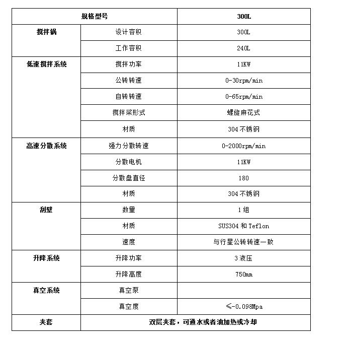300L高速分散双行星搅拌机是由低速搅拌器和高速分散器组合而成的,具备了良好的混合、反应、分散、溶解作用,特别适合从粉体到高黏度、高密度的物料溶解、混合、混炼、反应工艺。由于双行星搅拌机具有极大的输出扭矩,特别适用于粘度性比较大的产品,比如胶黏剂、硅胶、锂电池浆料等;可以根据不同生产工艺及物料特点选择不同的搅拌桨(如:麻花框式、多桨叶式),增加刮壁刮底、温控、真空等多种功能。